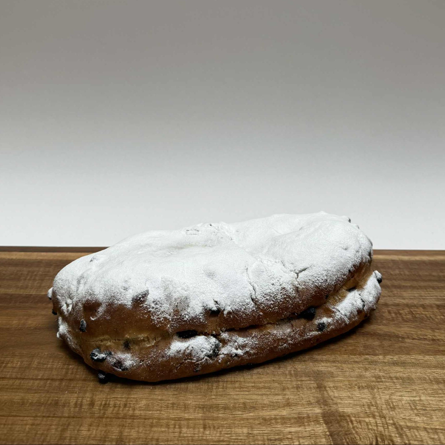 A traditional firm European fruited loaf with a fragrant almond paste centre.