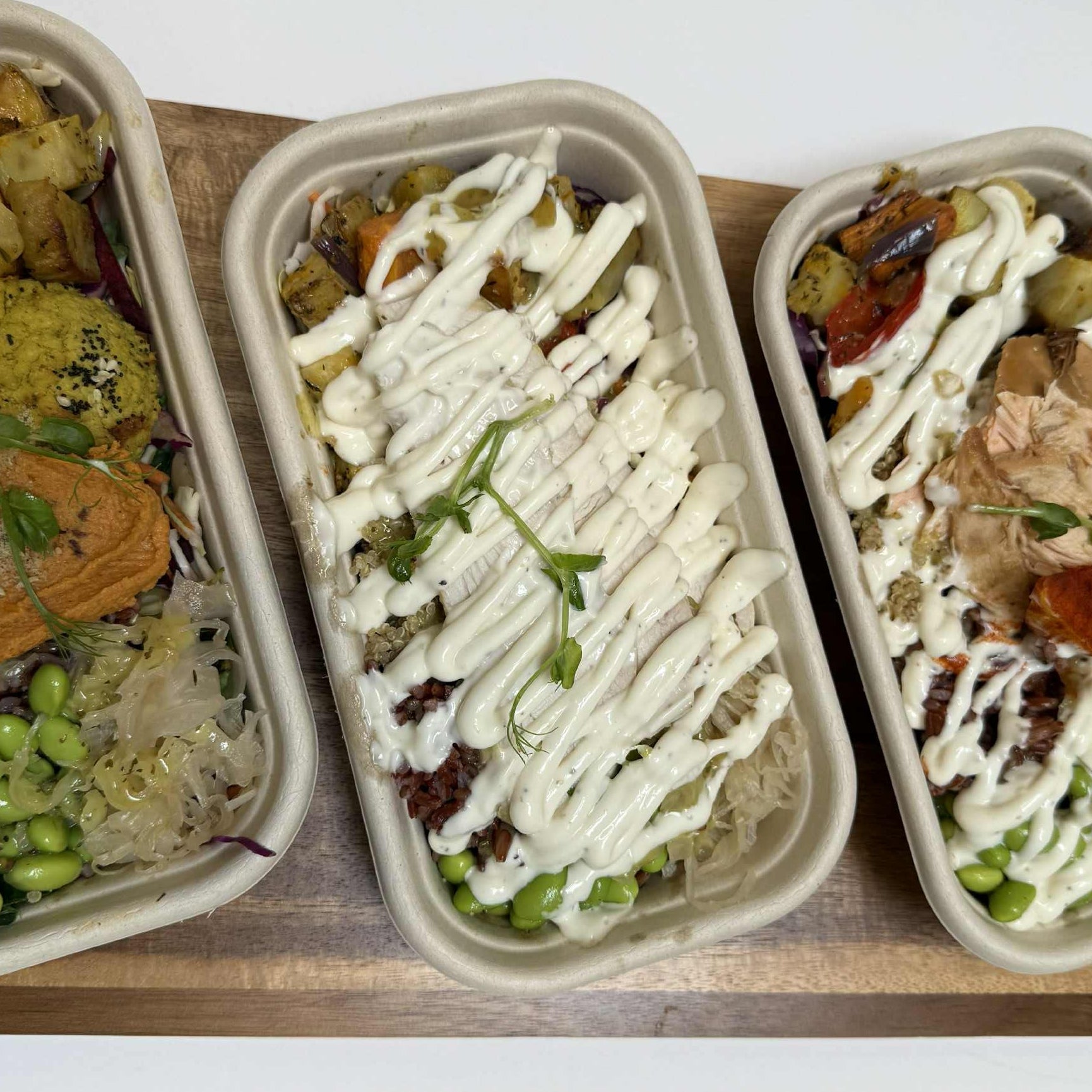 Our Chicken Aioli Buddha Bowl is bursting with flavour and nutrition. Tender chicken, creamy aioli, quinoa, black rice, roasted veggies, edamame, coleslaw and zesty sauerkraut come together for a revitalising, mindful experience. Nourish your body and soul, one bowl at a time!