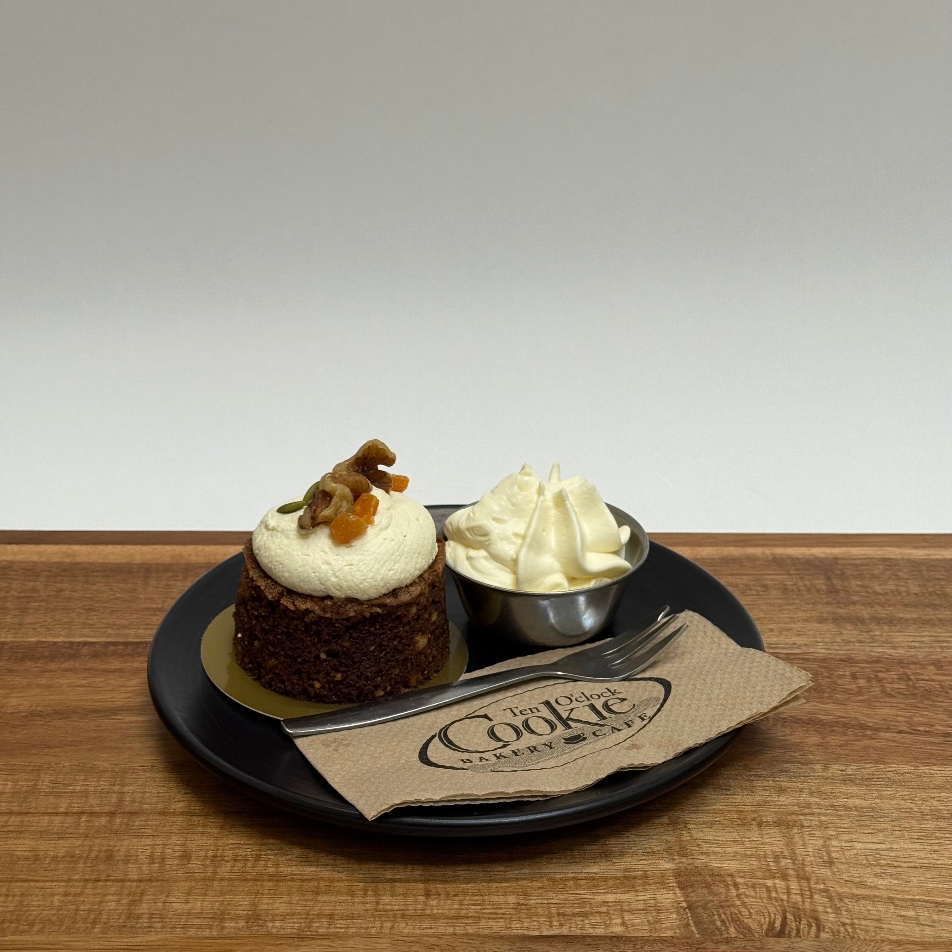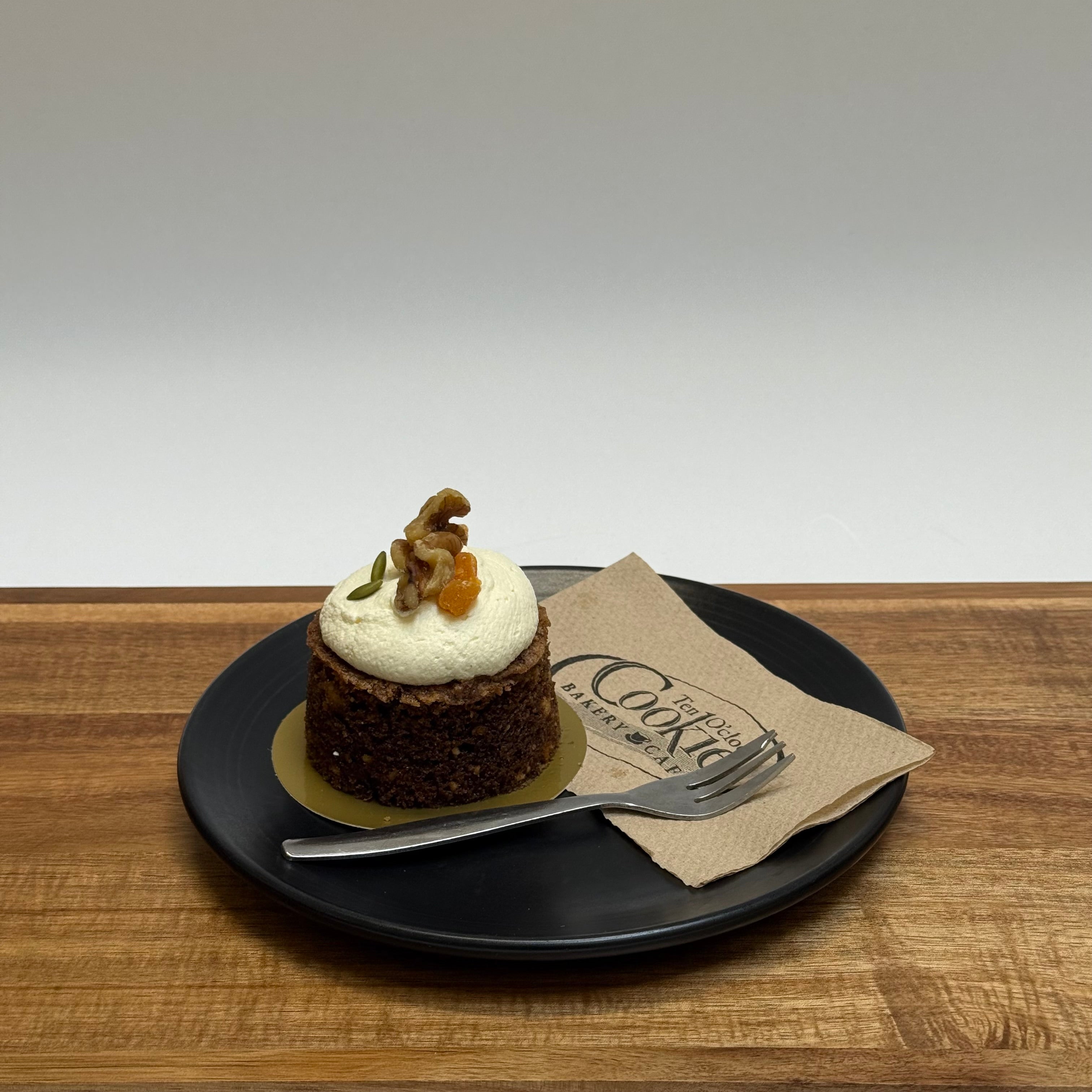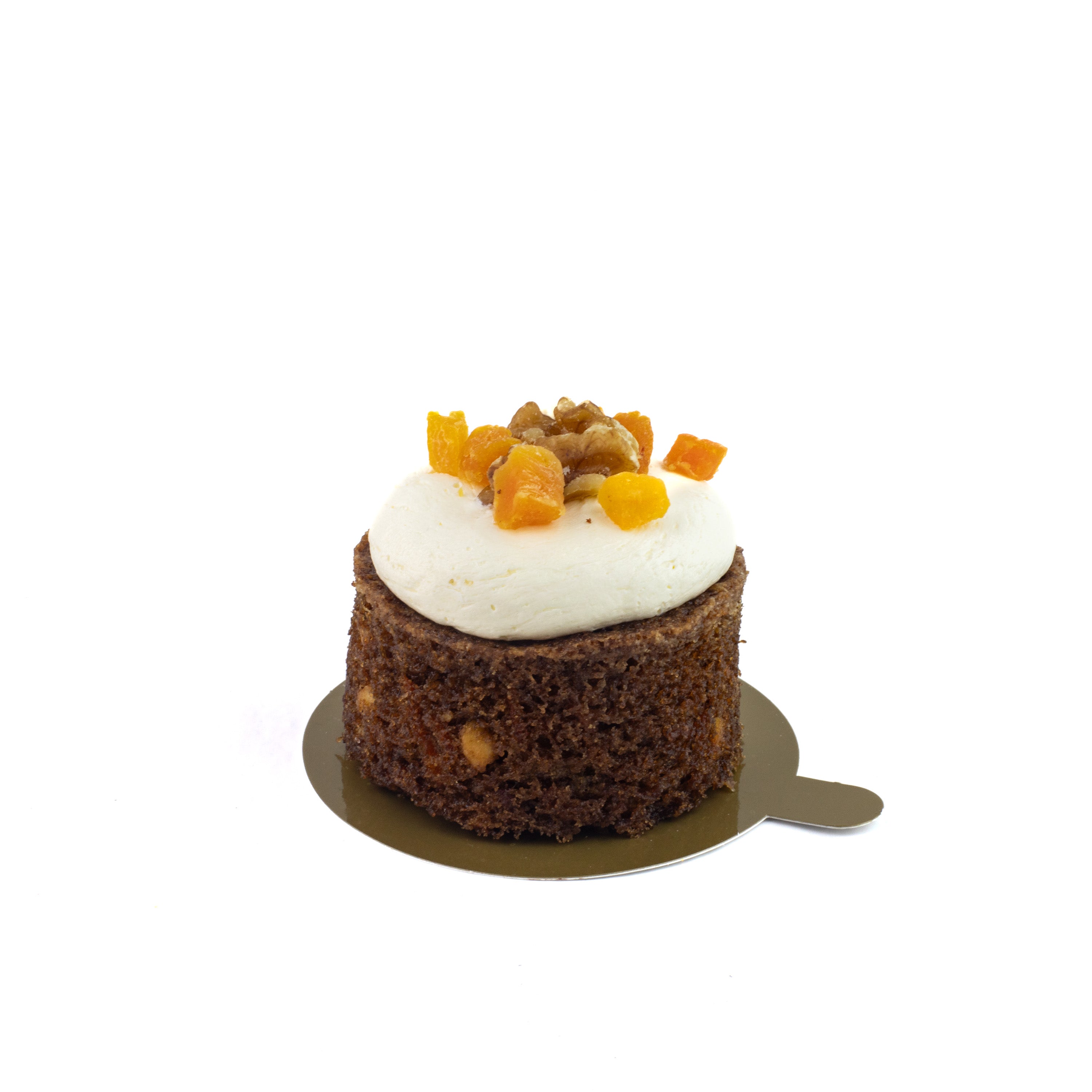 This moist and flavourful carrot cake is sure to delight any palate. Delicately topped with cream cheese frosting, dried apricots and walnut, it is the ideal combination of classic taste and velvety texture. Enjoy on special occasions or as a delightful indulgence!