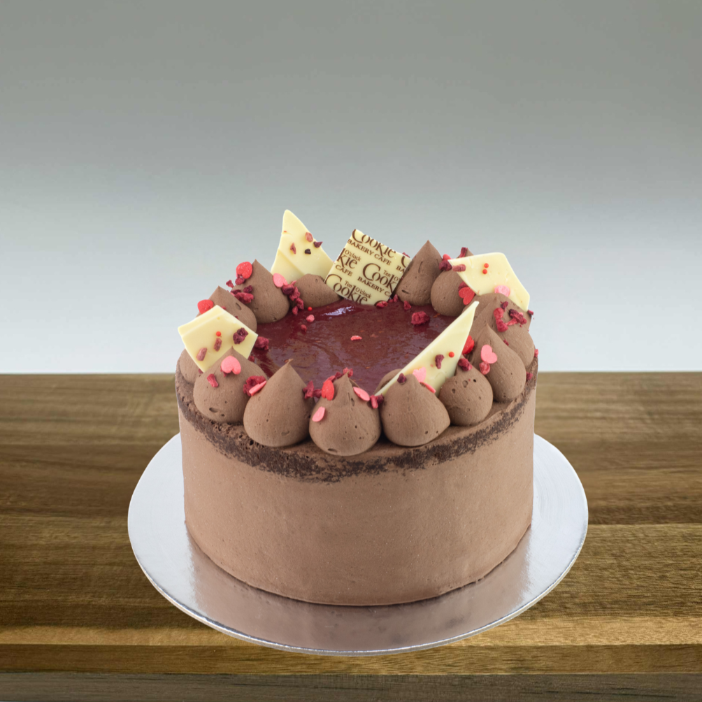 Enjoy the irresistible combination of chocolate and raspberry with our Raspberry Chocolate Mud Cake. Featuring three layers of our deliciously moist chocolate mud cake, layered with sweet raspberries and creamy chocolate buttercream, and finished with a raspberry coulis, this cake is truly indulgent.