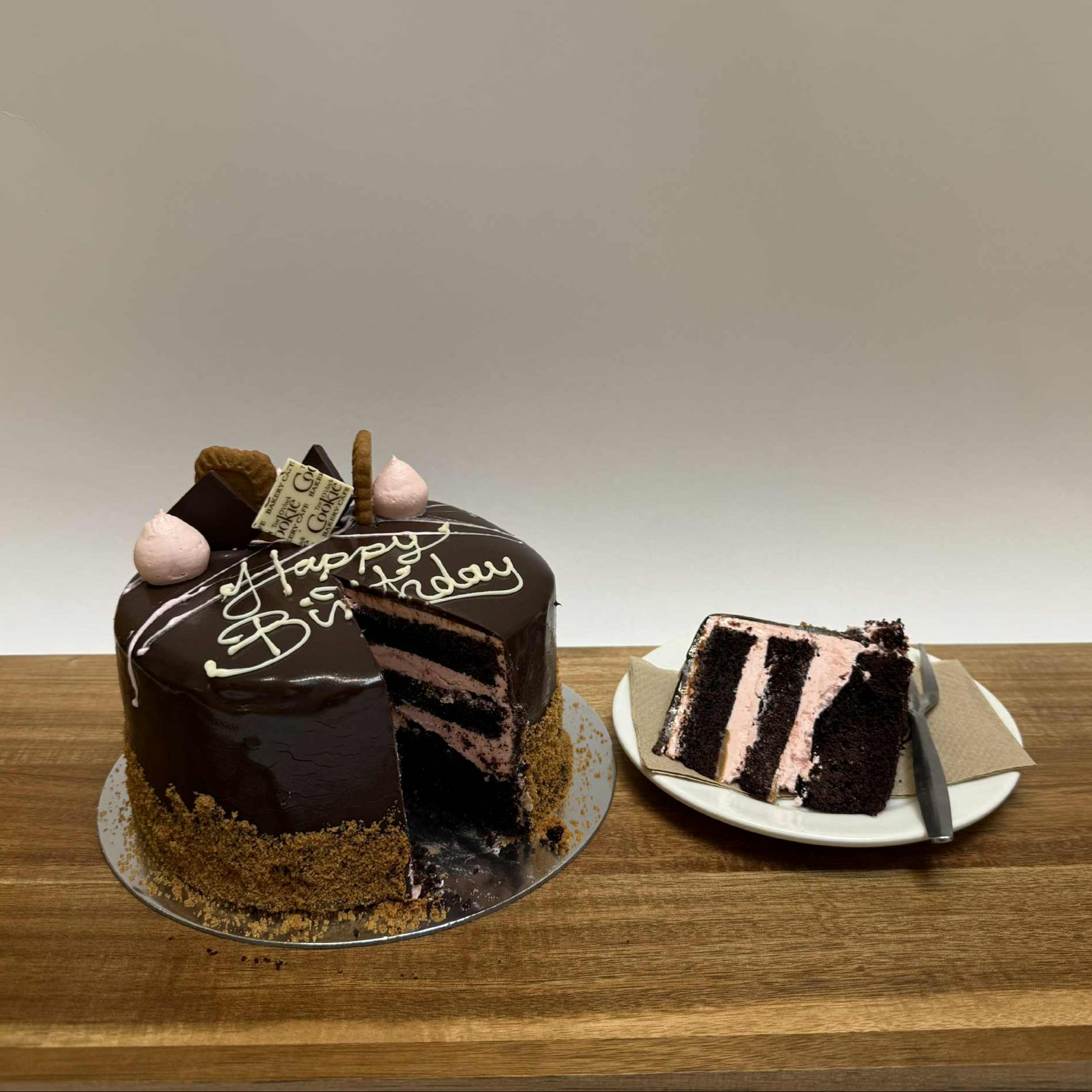 Indulge in our decadent S'mores Cake — a rich chocolate mud cake layered with smooth Biscoff spread and fluffy marshmallow frosting. Finished with a glossy chocolate ganache and Biscoff biscuit, this cake is a nostalgic twist on a campfire classic.