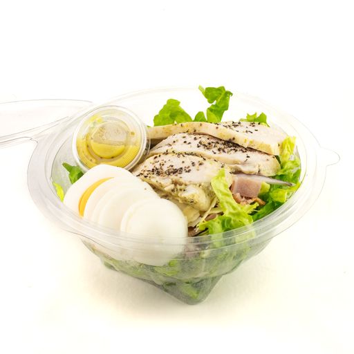 TenCC's reimagined take on the classic Caesar salad includes organic cos lettuce, bacon, parmesan, red onion, chicken breast and a boiled egg. Served with French dressing on the side.