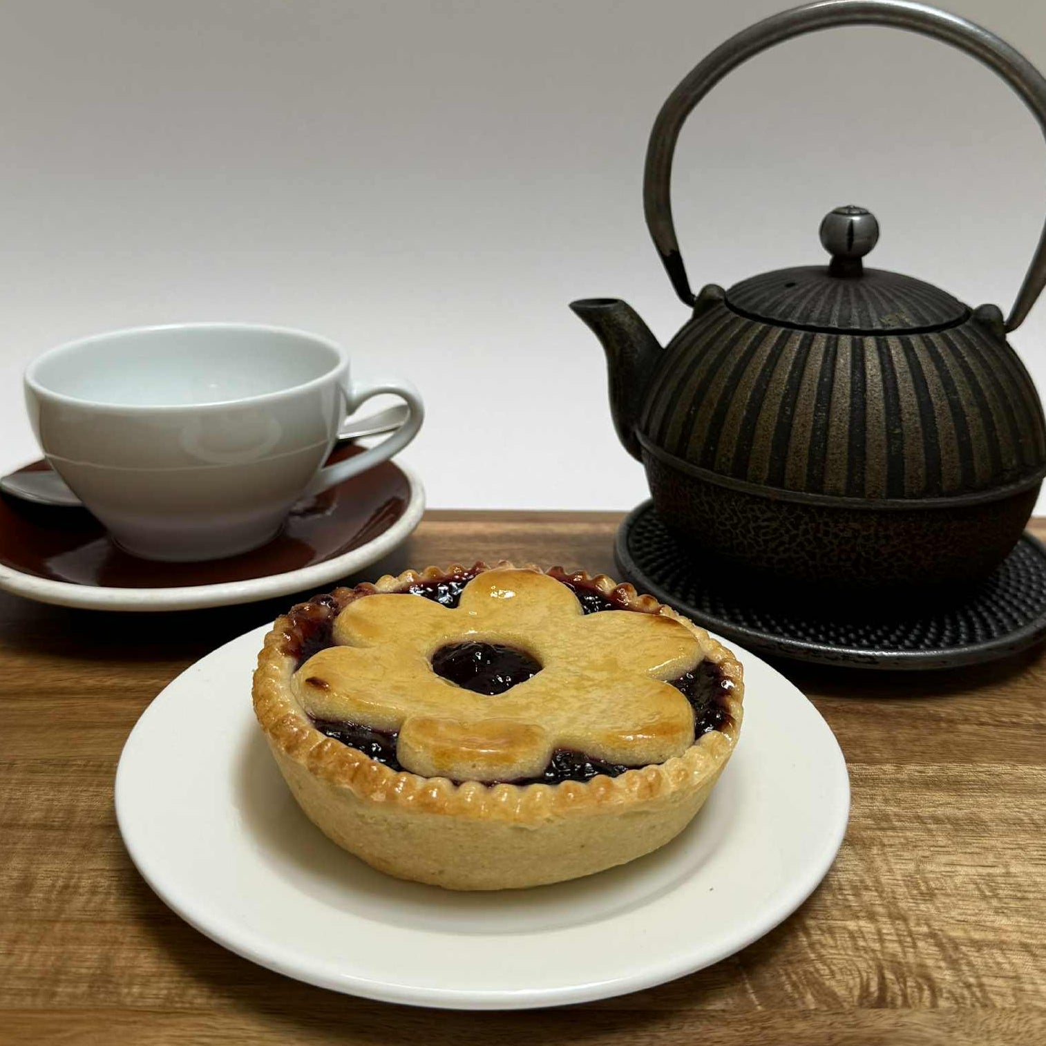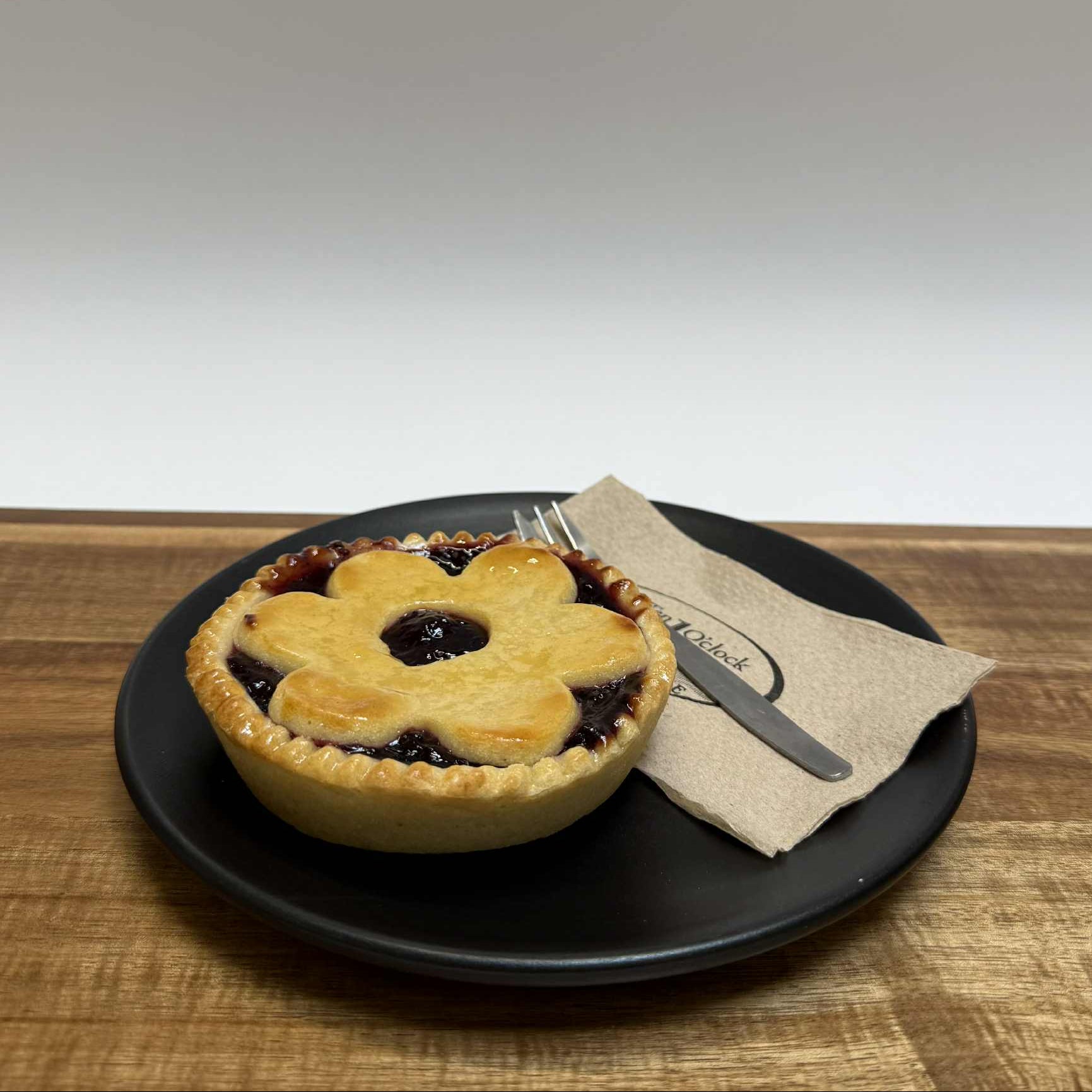 Delightsome short pastry crust, filled with Boysenberry patisserie and topped with a glossy glaze.